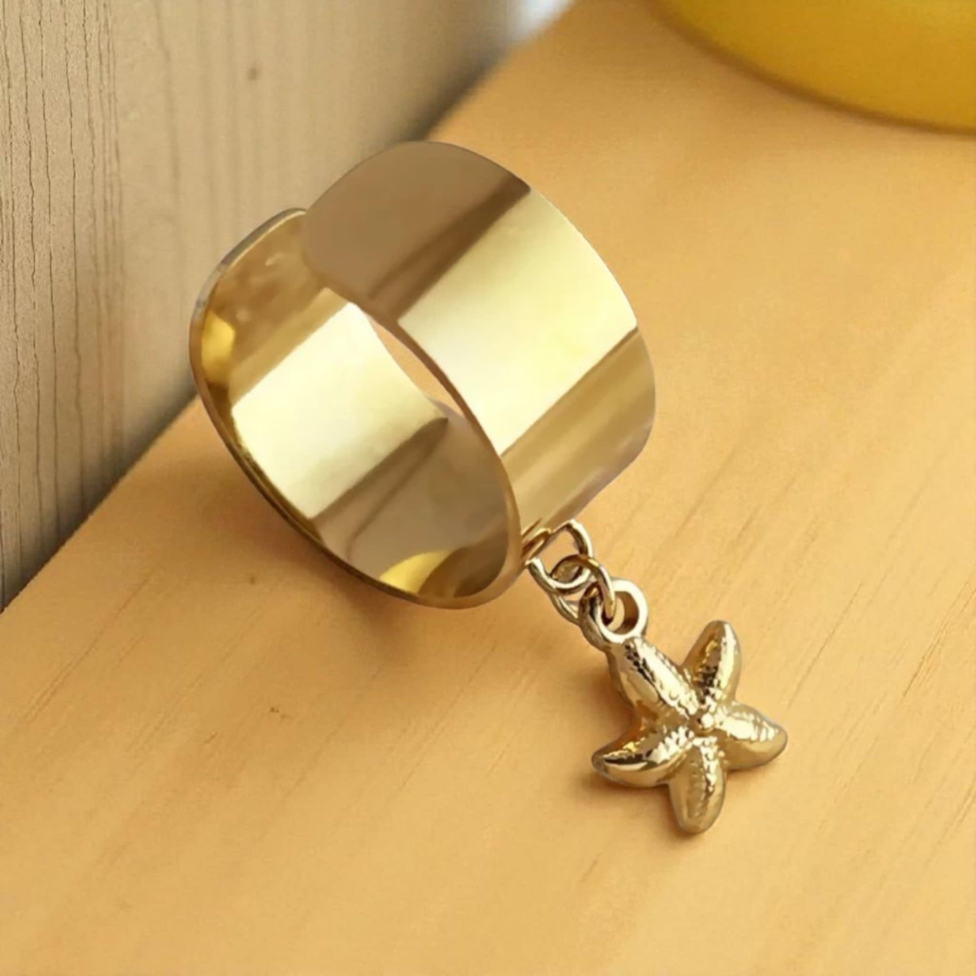 Cette bague breloque en forme d’étoile de mer est fabriquée en acier inoxydable 304, garantissant résistance et durabilité. Son plaquage or confère une élégance subtile, tandis que sa taille réglable assure un ajustement parfait. Adaptée pour un port en toutes saisons, elle allie style marin et fonctionnalité, idéale pour compléter une collection de bijoux raffinés.